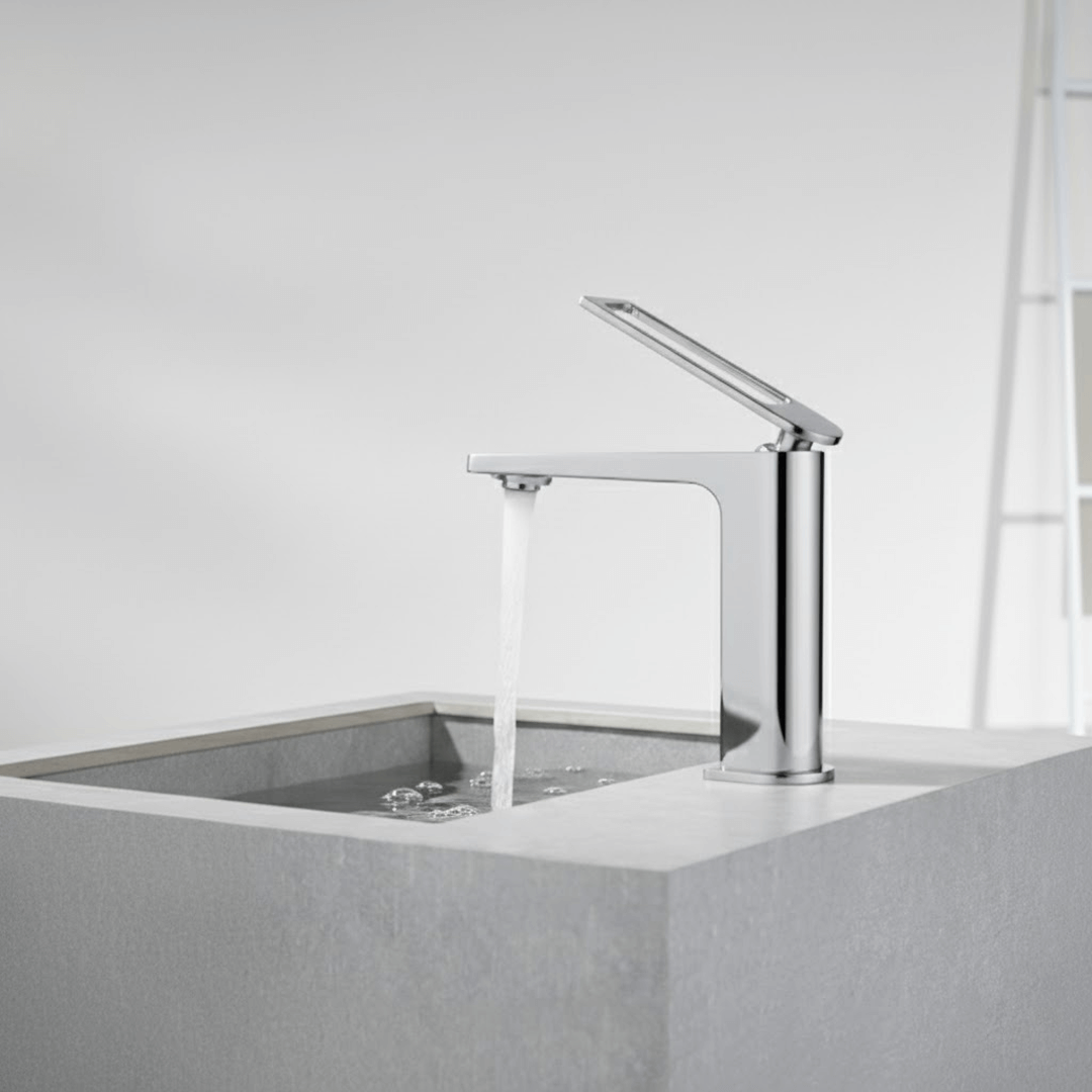 يجمع هذا الخلاط بين الكفاءة الشكلية والعملية ليضيف لمسة فاخرة على المغسلة مع انسياب مثالي للماء.