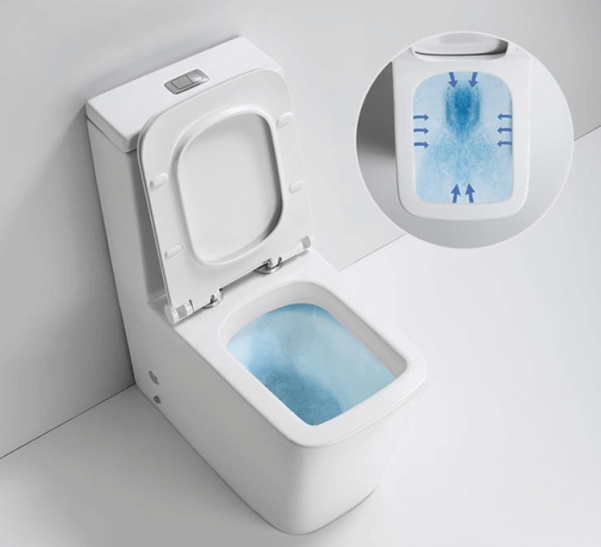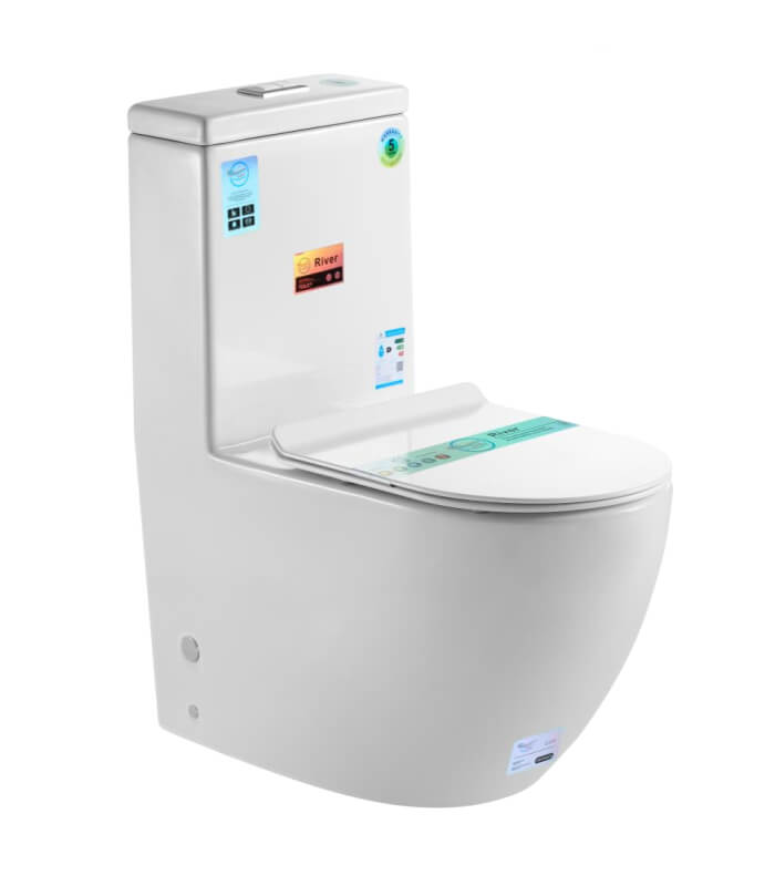 يحتوي على زر تشغيل مزدوج يسمح بالتحكم في كمية المياه لتوفير استهلاكها، بينما يوفر غطاء المقعد المصنوع من مادة UF المتينة خاصية الإغلاق البطيء لمنع الضجيج وحماية الغطاء من الصدمات.